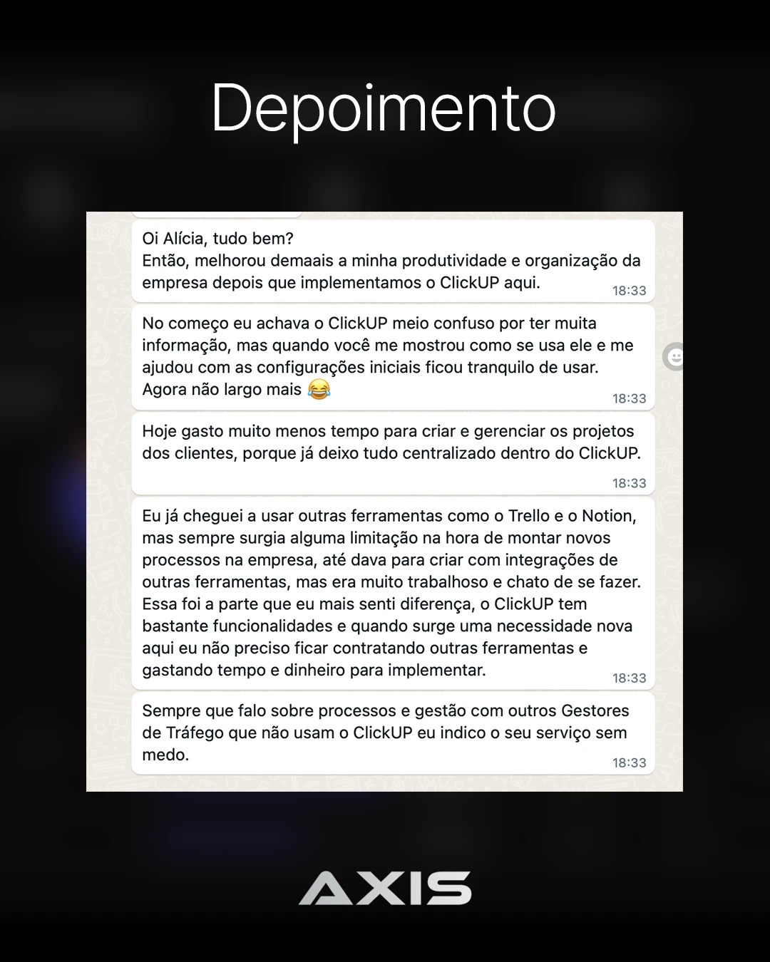 Meu nome é Alícia Bittencourt, sou sócia de uma assessoria de marketing, onde desenvolvi e apliquei pela primeira vez o método do Axis — e vi nossa operação se transformar.